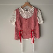 赤いギンガムチェックのトップス