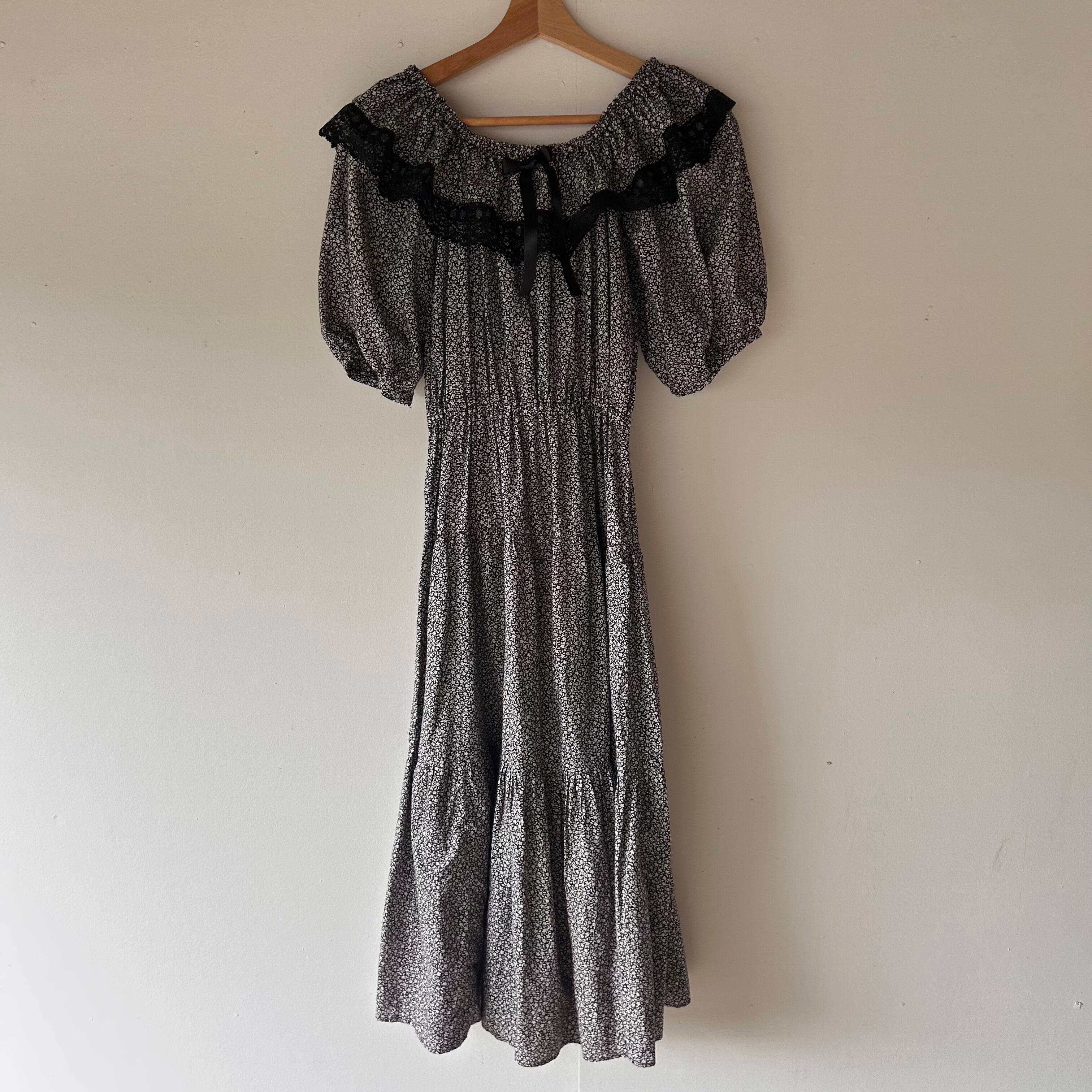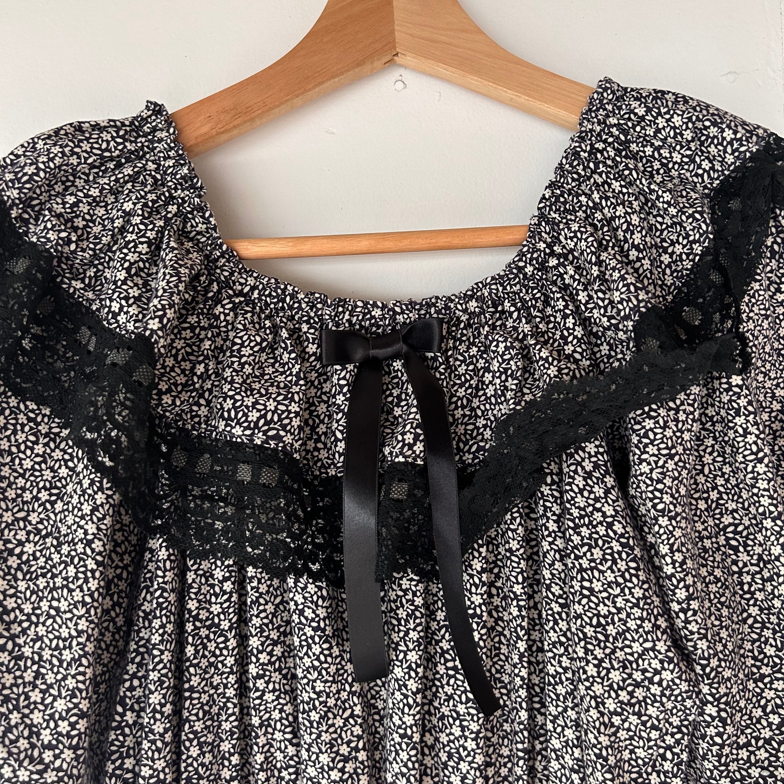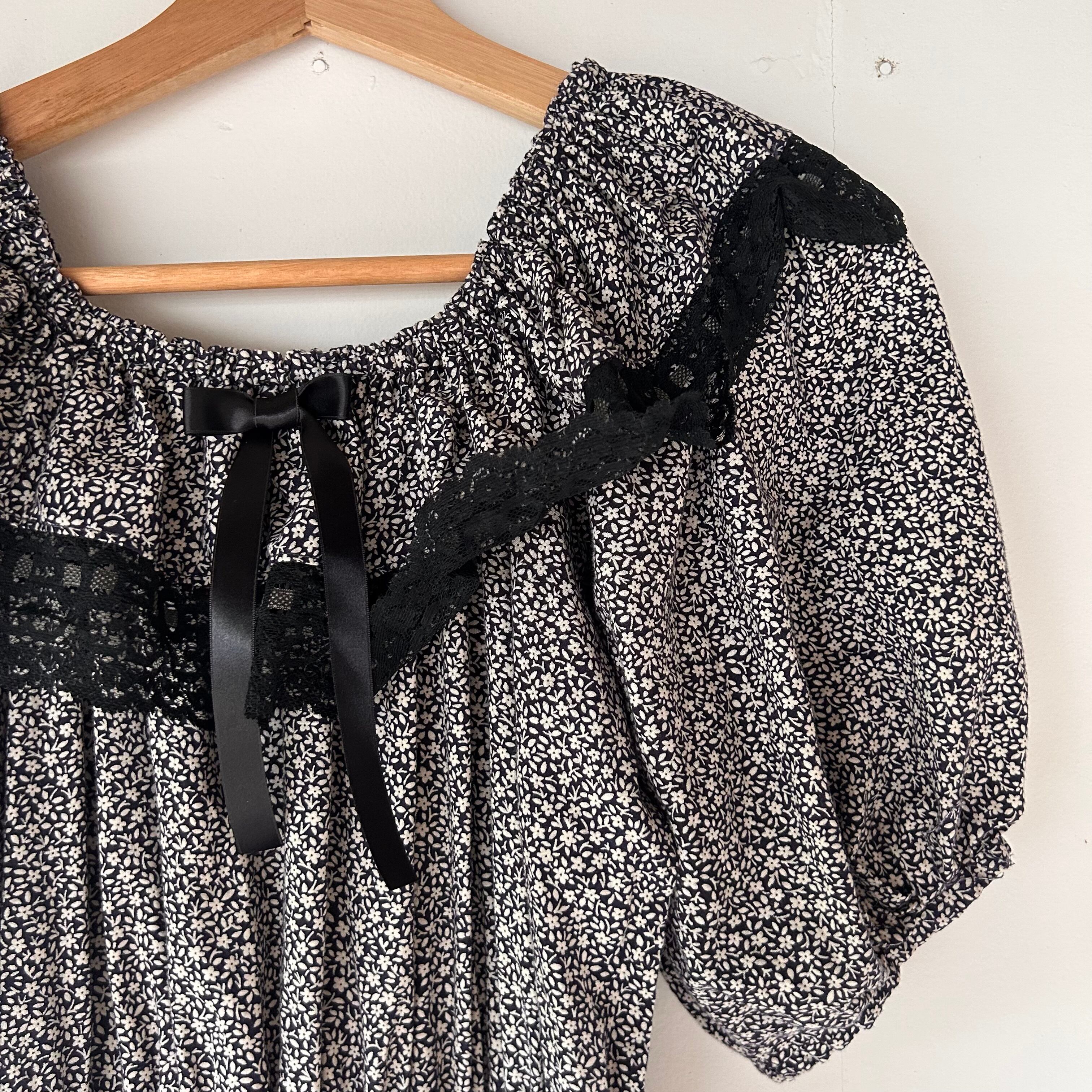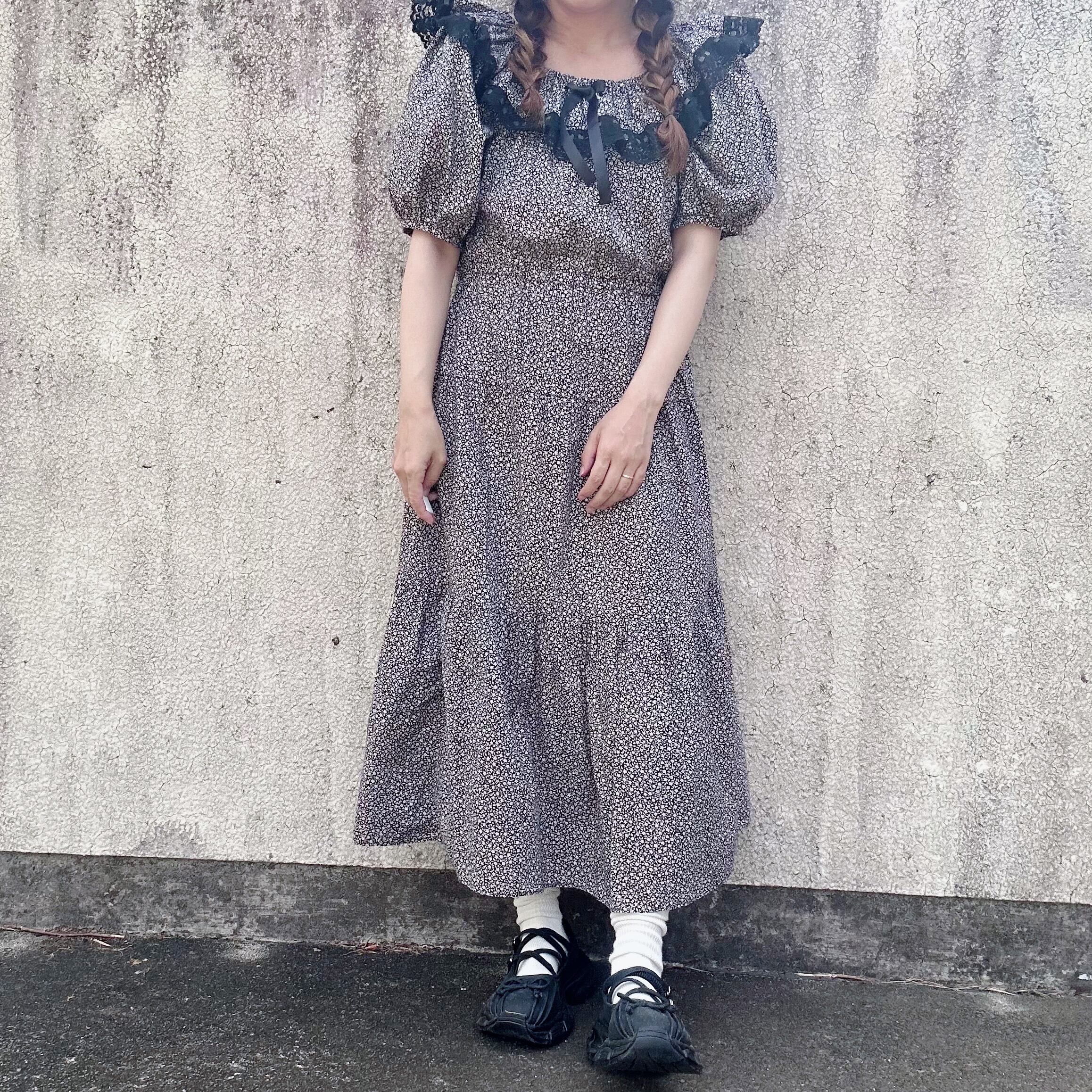 ブラックの小花柄のワンピース。
